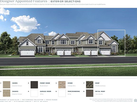 NEW CONSTRUCTION WITHOUT THE WAIT! Our LAST Dover, one of our most popular plans in Regency at Glen Ellen! Well-appointed upgrades chosen by our award-winning Design Studio team. The Dover Manor townhome features two-level living with a spacious kitchen open to the Great Room. The first-floor primary bedroom suite includes a private bath with large, tiled shower, walk-in closet, and linen closet. Spacious second-floor loft with large second bedroom and walk-in closet makes a great additional living space. Enjoy relaxing on your deck for those warm New England days. Community amenities will include resort-style clubhouse with fitness area, outdoor heated pool, walking trails, tennis court, pickleball, and bocce ball courts. Enjoy low maintenance living only 30 miles from Boston!
