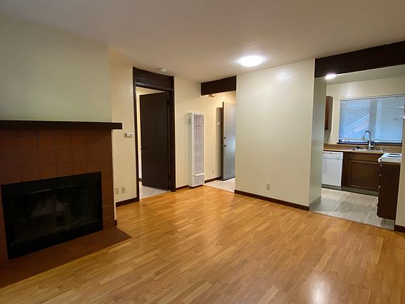 1br/1ba, about 560 sf, tile flooring and wood flooring throughout, walk in closet, recessed lighting, fireplace, and sunny and private patio off of living room with storage unit in patio area.