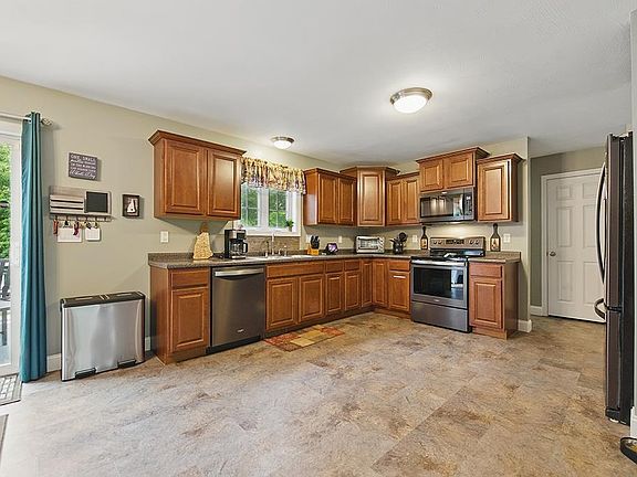 This spacious Colonial home in Raymond offers a versatile layout ideal for a variety of living arrangements. Whether you have teens, college-aged kids returning home, extended family, or are looking to offset the cost of homeownership with rental income, this property delivers flexibility and comfort. Set back in a quiet, well-maintained neighborhood, the home offers privacy and a welcoming feel. The main level features an open-concept kitchen and dining area, a generously sized family room, a separate laundry room, and a half bath. Upstairs, you'll find three well-proportioned bedrooms with large closets and a full bath with a tiled shower. The lower level includes a private in-law suite with its own entrance and utilities. This space features a full kitchen, family room, one to two bedrooms (or office), and two full bathrooms—one on each floor—making it ideal for multi-generational living or rental use. The exterior offers a spacious yard, patio, deck, and storage shed, as well as a one-car garage. This well-maintained home is truly move-in ready. Showings begin at the open house this Saturday (6/14) from 12-2
