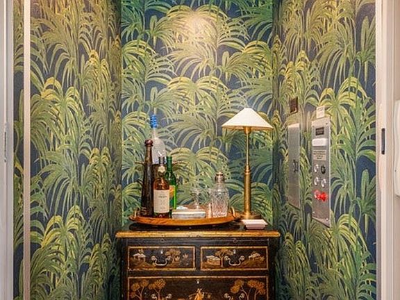 PENTHOUSE TRIPLEX WITH PRIVATE ELEVATOR Romance and glamour abound in this absolutely stunning and mint turn-key triplex penthouse on one of the most charming Nolita blocks of Lower Manhattan. A stone's throw from the iconic Basilica of St Patrick's Cathedral leaning brick wall and Elizabeth Street Sculpture Garden and surrounded by the best restaurants and shopping in Downtown is this discreet, boutique condo at 25 Prince Street. There are two entrances: a private, key locked elevator landing on the fourth floor, or a door at the bottom of the four-story custom curved marble staircase on the third floor landing of the building. The elevator opens to a gracious foyer with entry closet and open plan living, dining and kitchen area with north and south exposures and a private terrace off the eat-in kitchen. Floor to ceiling wood framed windows, with separately opening clerestory windows in the kitchen, flank either side of the grand scale entertaining area. The Roman and Williams designed kitchen features bespoke black wood and oak cabinetry, a Wolf range and stove with pot filler faucet, and tons of storage options with power in all the right places. The room is wrapped in gorgeous hand-painted mural wall coverings creating a serene setting for breakfast, lunch, and dinner. The terrace offers the ease of indoor/outdoor seasonal cooking and looks at ivy wrapped brick buildings and a lovely landscaped common garden shared only with the two other apartments in the building. There is a built-in wine fridge and marble clad half bathroom tucked away on this level. The internal private elevator cum entertaining bar is accessible on each level of the apartment hidden behind a paneled door. The living room has custom bookshelves and lighting, herringbone floors, and gets streaming sunlight all day from the enormous south facing windows. Up the marble staircase to the second level of the apartment one will find two bedrooms and a full bathroom. One bedroom features a gas burning fireplace and fabric upholstered walls and would make a lovely study or library. The second bedroom has a private entry way with elevator landing, floor to ceiling Carrera marble slab bathroom with Waterworks fixtures, shower and tub. This bedroom has its own private glass wrapped terrace with joe wood decking and enough room for lounge seating. The top floor master suite is a world unto itself. Enjoy a ride up with a cocktail or snack in the outfitted bar/elevator or walk the grand, curved and paneled stairwell with a massive skylight at top; the ultimate retreat awaits you. Blue skies, ivy, and Hollywood Junipers frame an iconic downtown view. The terrace features a seating area, planters, and the coveted outdoor shower and bathtub for relaxing and bathing under the stars. There is a fully outfitted walk-in closet with moveable island, built-in laundry storage, and tons of unique fixtures and cabinetry for the most fashionable collector. The master bath is as spacious as any other room in the house. It has a double wide marble and steel vanity, walk-in shower with a curved marble mosaic wall, and deep soaking tub. The three wood-framed south facing windows have a peek of a view of the Freedom Tower and sits above all the beautiful cornices of the townhouses that surround. Artfully conceived by Roman and Williams and upgraded by the current owners with a plethora of bespoke touches, there are herringbone parquet floors throughout, central AC/heat zoned by room, radiant floors in the bathrooms, recessed and custom lighting fixtures, a gas fireplace, three private outdoor spaces all with water and power, and tons of custom storage throughout. The apartment has private vented laundry and storage in the basement accessible only to this apartment. The meeting of grand Uptown Townhouse style living in the perfect Downtown Condo Penthouse!