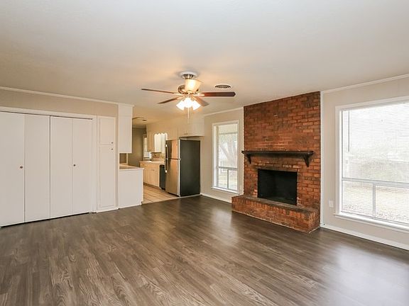 Step inside to find a warm centerpiece, perfect as a focal point for the home. The layout flows into a dining space and kitchen with ample cabinetry and counter space, designed for everyday function. The spacious primary suite includes a private bath, while three additional bedrooms and a second full bath provide flexibility and comfort.