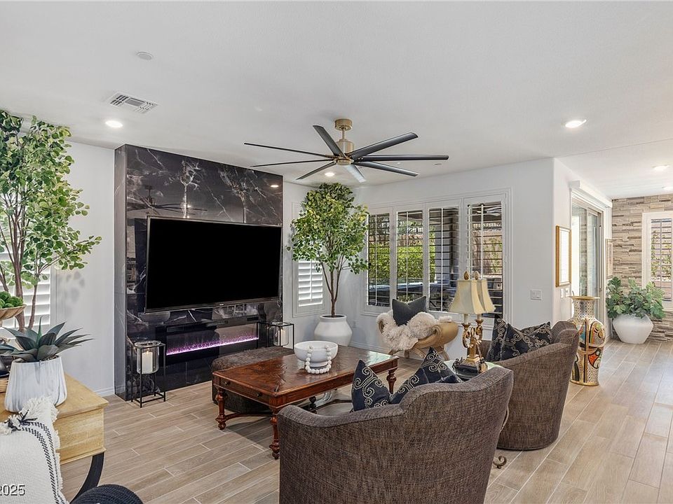 Imagine living the luxury multimillion dollar Lake Las Vegas lifestyle! Del Webb at the Lake offers this opportunity. Home to Monte Lago Village with shopping, dining, water sports & more. Surrounded by mountain views, a shimmering lake & golf. Active age restricted community with clubhouse, pool, spa, fitness center & social events. The home features upgraded landscaping & castle stone façade. Inside: tray ceiling, plank tile floors, shutters, designer lighting & can lights. Kitchen & laundry have abundant 42” cabs w/crown molding & fine large handles. Stack stone accents in & out. Living area boasts a floor-to-ceiling Fireplace. Custom 2-drawer DW, convection oven, upgraded faucet & pendants. Situated on an oversized lot with an outdoor kitchen including fan, tile/stone workspace, SS appliances, built-in bar & showstopping firepit. Plenty of hardscape for entertaining. This home fits any lifestyle—don’t wait or it’ll be gone!