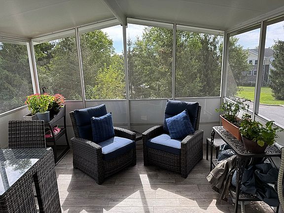 Belle Faire Community 3-bedroom, 3-bathroom attached unit with 1st floor master suite. Recently renovated in 2024 with new kitchen, Cathedral ceilings, updated bathrooms, a new washer and dryer, newly refinished floors and brand new carpeting, new lighting, newly painted, new shades on windows, electric fireplace, 2-car garage with an electric car charger, a large, finished basement with den/sleeping area and lots of storage, plus a brand new roof! Community has a club house with a gym, indoor and outdoor pools, playground and basketball courts, all included with HOA fees. Maintenance includes landscaping, snow removal, house washing, sprinkler system. Pets allowed. Choice Home Warranty plan for appliances included through 2026. Taxes $24,187 for 2025. Desirable Blind Brook -Rye Union Free School Distract