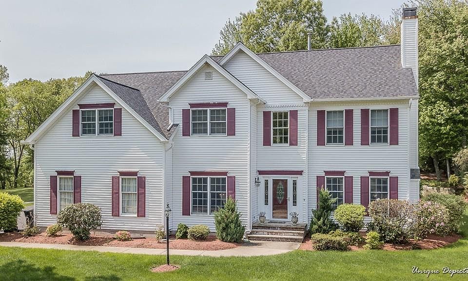 Welcome to North Andover Estates. This beautiful colonial has one of the best lots in the subdivision. Beautiful gardens and a timber wall. Enter into the two story foyer. Home office. Living/Dining room have thick crown molding and are open to each other, great for expansive entertaining. Eat-in kitchen has center island with cooktop, granite counters, double sink, pantry, and stainless steel appliances. Kitchen is open to a step down family room with a fireplace, soaring cathedral ceiling and skylight. Upstairs there is a large master suite with walk in closet, sitting area and full bath with a jacuzzi style tub and double sinks. Three additional good size bedrooms with double closets. Finished lower level playroom and media room. Great neighborhood and convenient location.