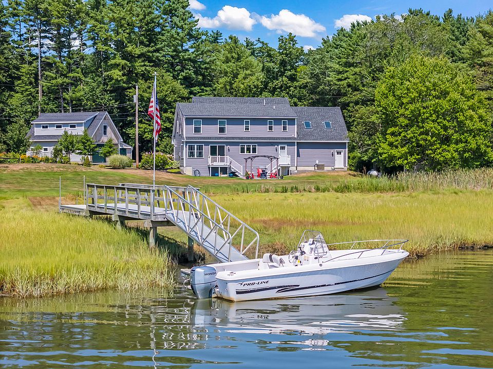 Take full advantage of riverfront living! From every room take in the bucolic scenery and the ever-changing views of the river. From your back door walk down to your private dock for a day of boating or fishing. Return back to a pergola-covered patio for grilling or entertaining... or just relaxing. This half acre lot is made up of 5 lots from the original development plan giving the property 269 feet of waterfront, a sprawling lawn for a game of cornhole and nature as far as the eye can see with THIS view - you will feel like you are in your own private haven! This well-designed, custom-built home has a convenient office, stunning kitchen with an enviable walk-in pantry and welcoming island for morning coffee. The kitchen opens to the sunny living room with a handsome gas fireplace. The second floor has 3 bedrooms, including a sumptuous primary suite with deep soaking tub and tiled shower. Another full bath and separate laundry also exist on this floor, as well as a HUGE family room with skylights for catching yet another view of the sparkling river. In addition to the attached 2 car garage there are multiple parking options for those big gatherings. This is a property not to be missed.