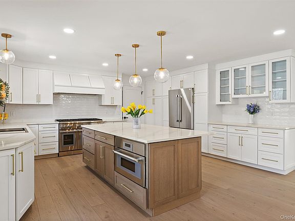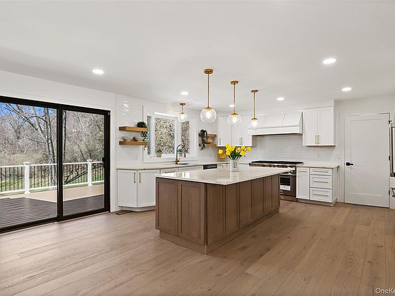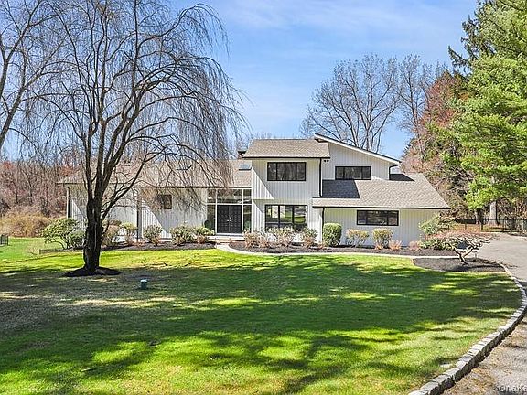 Experience luxury living in this newly fully renovated, turn-key home set on the prestigious Round Hill Rd in Armonk, with the added bonus of the opportunity of joining the Windmill Club. Boasting an expansive open floor plan, large rooms, vaulted ceilings, wide planked white oak hardwood floors, this designer inspired home is filled w/ high end finishes throughout. The large open living room & family room, with vaulted ceilings and free standing, two-sided gas fireplace leads into the most elegant chef's kitchen, fully equipped with stainless steel Thermador appliances (including Thermador Professional Range), quartz countertops, 8 ft. center island and more. The mudroom, with its outfitted cubbies, is situated conveniently to the large 2-car garage and driveway. The formal dining room, with its elegant chandelier and transitional partition; and stunning powder room with a floating vanity and white oak acoustic modern paneling add beauty and uniqueness of the first floor. The primary bedroom ensuite will dazzle you with a vaulted ceiling, spacious, elegantly customized walk-in closets (withe self-closing barn doors), private deck off the bedroom, and a glorious well appointed bathroom with heated floor, stunning cabinetry, deep oversize free standing tub, oversized shower, with digital smart water faucets and shower displays, smart heated toilet, and heated towel bar. Three additional generous sized bedrooms, with custom outfitted closets, and exquisitely designed full bathroom with waterfall faucet, LED mirror and glass enclosed shower, complete the second floor. The basement includes large recreation spaces, a full laundry room with new washer/dryer, farm sink, butcher block countertop, cabinetry and work space, full bathroom, office/den, utility room with 2 new furnaces, new water heater, new vents, new smart thermostats, generator, and lots of storage. The newly renovated maintenance-free deck, spanning across the back of the home, is a perfect spot for entertaining, and enjoying an expansive park -like backyard, including a private in-ground heated pool with pool shed (New pump and filter installed in pool July 2025). In addition to the amazing features of this home, you have the opportunity to join the Windmill Club, as home comes with the MEC, offering many amenities, including a beach, lake for swimming, clubhouse and tennis.