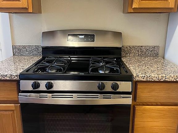 - Kitchen with Shaker Cabinets, Granite Counters, Refrigerator, Gas Range/Oven