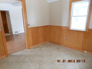 Bank Owned. 3 bedroom 1 bath 2 story home on a large lot with side drive & detached 2 car garage. Newer exterior siding, stone and iron fence. Tiled foyer and kitchen, some original features and woodwork. Home needs some minor cosmetic repairs. Activation of utilities, cost to de and re winterize if needed for inspections are a buyers charge and responsibility. Local bank may finance up to 95% if you qualify