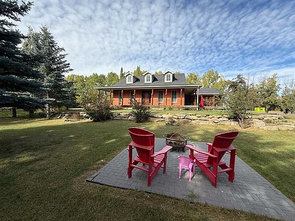 Properties of this caliber rarely come to market. Once part of Rural Rocky View County, this residence now offers the perfect blend of country tranquility and urban convenience—you can walk for coffee yet return home to your own secluded, tree-lined retreat behind an automatic gated entry. The timeless brick one-and-a-half-storey home showcases over 5,050 square feet of refined living space, complemented by a heated oversized double attached garage and an additional heated detached double garage. The main floor spans nearly 2,200 square feet with rich hardwood flooring, classic wainscoting, and an elegant hardwood staircase. The stunning two-toned chef’s kitchen features a butcher-block island, cabinet-paneled refrigerator, gas range with pot filler, and generous windows framing serene treed views. Step outside to the rear deck with a custom gazebo and windscreens—ideal for outdoor dining and relaxation. Every window opens, and each exterior door is equipped with custom Phantom screens, welcoming a natural breeze throughout. The adjacent formal dining room offers the perfect setting for entertaining, while the main-floor laundry with sink adds practicality. The main-floor primary suite is a luxurious retreat, highlighted by vaulted ceilings, direct access to the wraparound teak veranda, and a spa-inspired ensuite with dual sinks, standalone ultra-air tub, steam shower, and heated floors. A second bedroom (or flexible living space) on the main floor boasts vaulted ceilings, abundant natural light, and a cozy gas fireplace. Upstairs, two additional large bedrooms each include walk-in closets and share a charming Jack & Jill five-piece bathroom. The fully developed lower level features a custom wardrobe area, theatre room with projector, fitness space, expansive recreation room, fifth bedroom, secondary laundry, and direct stair access to the garage. The utility room is meticulously designed with hydronic heating, air conditioning, in-floor heating throughout, additional water storage, and ample steel-shelved storage. Outside, enjoy an invisible pet fence, greenhouse, raised garden boxes, and mature trees that create a sense of total seclusion. Experience rural living within minutes of city amenities—this extraordinary Chestermere acreage offers unmatched privacy, comfort, and elegance.