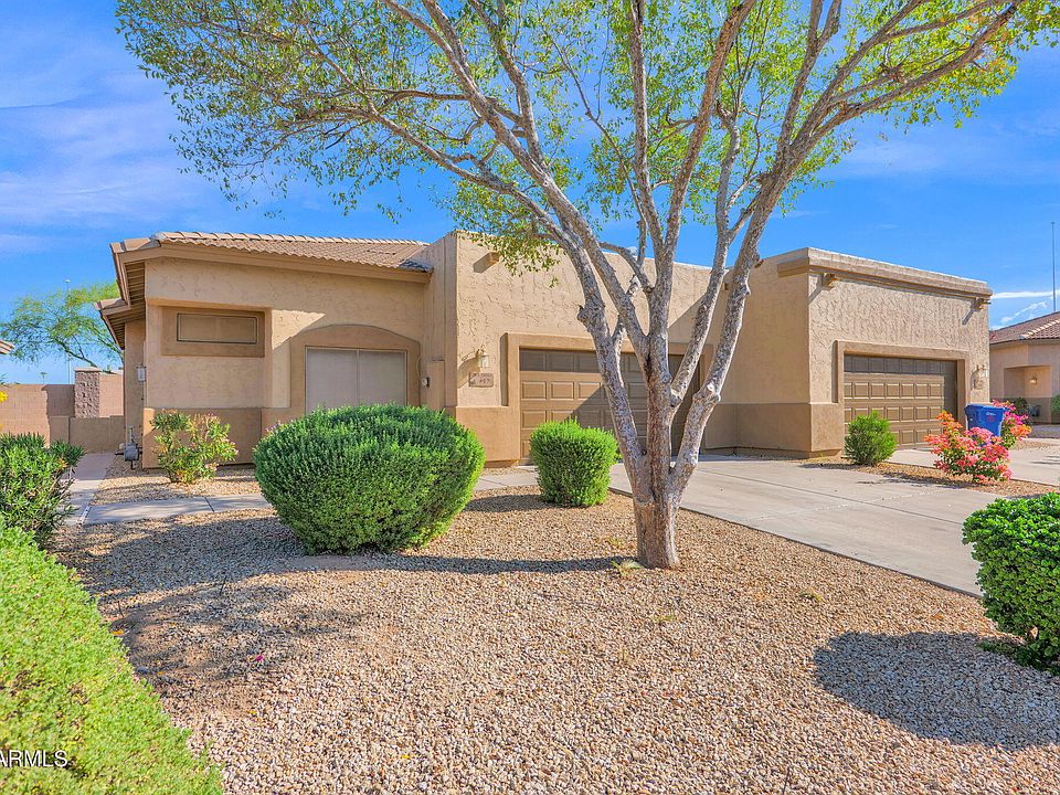This beautifully maintained home offers the perfect blend of comfort, convenience, and resort-style amenities in one of the area's most desirable 55+ communities. Step inside and discover a thoughtfully designed split floor plan, ideal for both privacy and entertaining. The open floorplan flows seamlessly, while the bright open kitchen is perfectly for gatherings or quiet evenings at home. Custom cabinetry in the laundry room adds functionality and storage, and the 2-car garage ensures plenty of room for toys, hobbies, or golf gear. Enjoy Arizona's year-round sunshine from your back patio, a perfect spot for morning coffee or unwinding at sunset. Beyond your front door, the community truly shines. Spend your days swimming laps in the sparkling heated pool, soaking in the spa, or grilling with friends at the BBQ pavilion. Stay active with neighbors on the pickleball courts, or simply enjoy the beautifully landscaped surroundings designed for relaxation and connection. With its low-maintenance design, active lifestyle amenities, and welcoming neighborhood atmosphere, this home offers more than just a place to liveit's a chance to thrive.