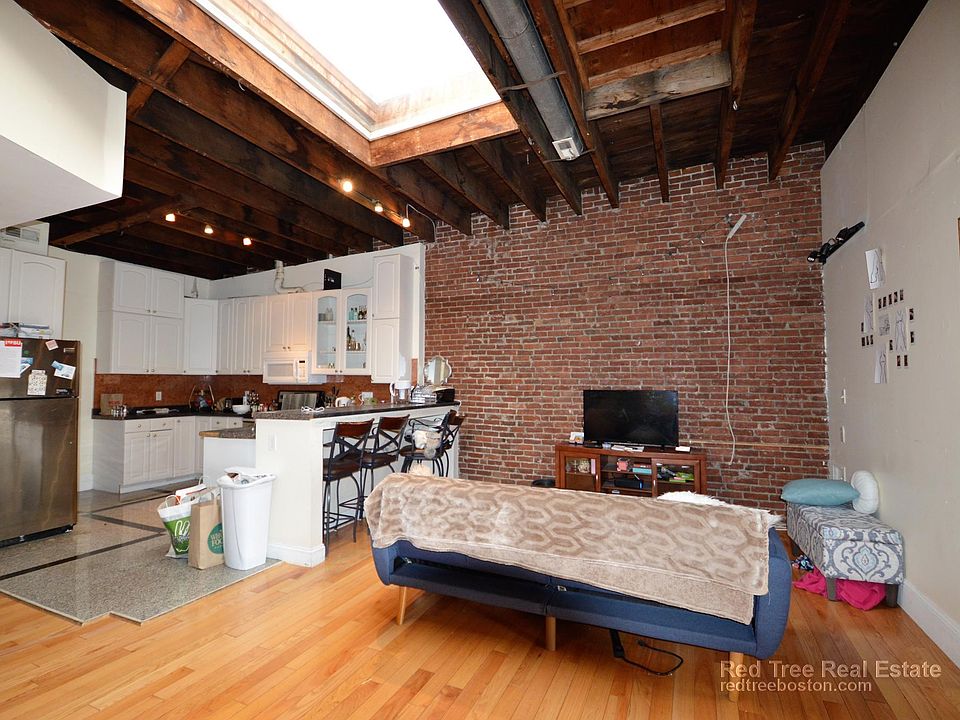 Top floor stunning 4 bed 2 bath on the Brookline/Fenway border. All bedrooms are large with extremely high beamed ceilings. Modern, fully applianced and stainless kitchen. Open concept kitchen/living room with skylight. Exposed brick throughout the unit. Central AC and heat! Washer/dryer in unit. Right behind Whole Foods and plenty of restaurants/bars. Across from St Mary's C line stop, minutes from the D line and commuter rail. Cats allowed; must be fixed.