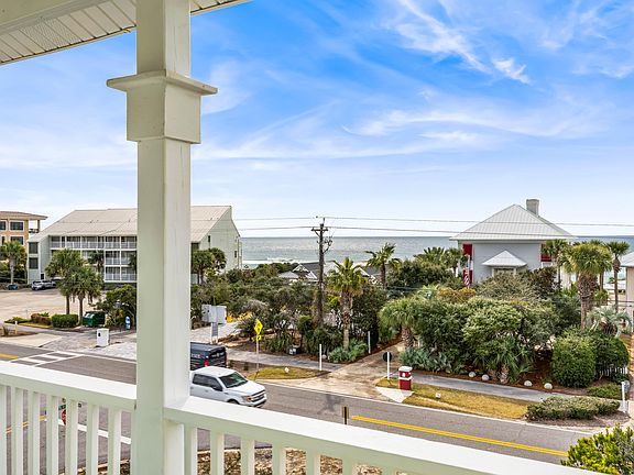 GREAT LOCATION is RIGHT ACROSS FROM PUBLIC BEACH ACCESS!! SO EZ TO GET TO THE BEACH!! GREAT GULF VIEWS from multiple levels of this 4 bedroom, 3.5 bath home right on SCENIC HWY 30-A. This home sits high on a bluff & is close enough to hear the sounds of waves crashing. 25 Seabreeze Trail would make a great 2ND home or VACATION RENTAL. Home has a balcony on each level, 2 BR on first floor, an open floor plan with views & plenty of space to entertain. Kitchen w/ granite counters & stainless steel appliances and an additional bedroom on the second floor. There is another room with 1/2 bath & private balcony on the third floor. With plenty of room and easy access to all 30A has to offer Only 75 steps from the beach access, COMMUNITY POOL dedicated parking spots add to this amazing value!