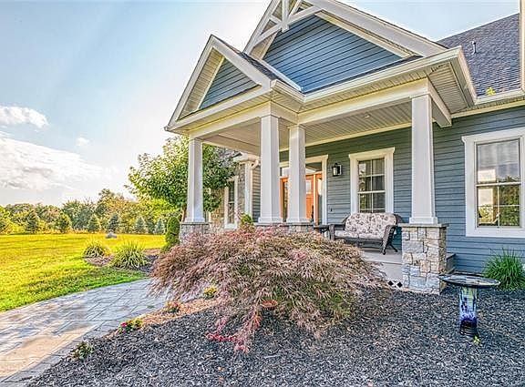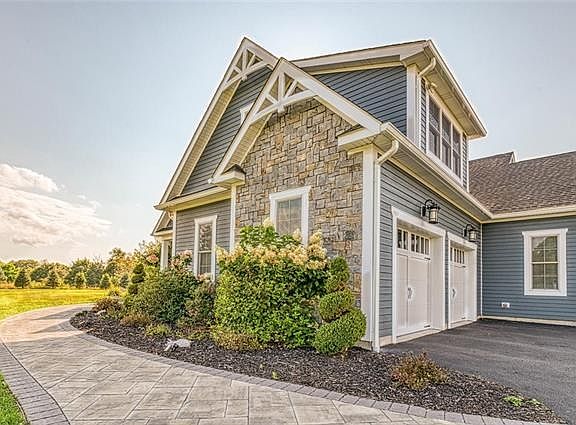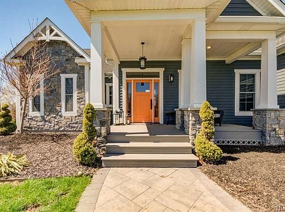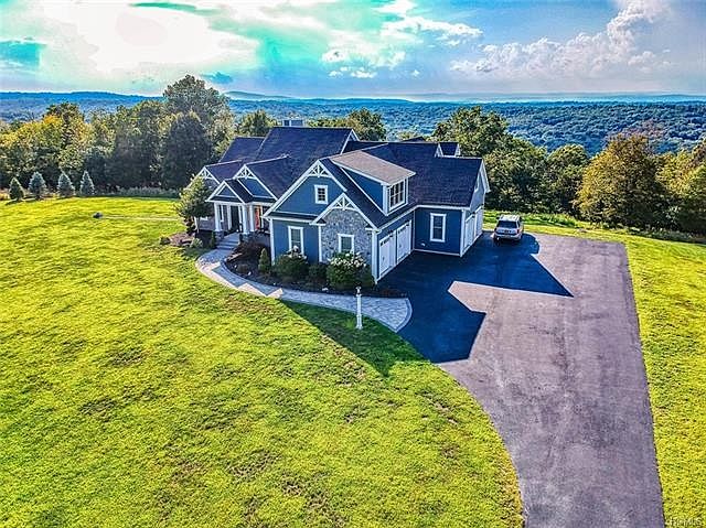 This impressive and luxurious craftsman home is located on a private road at the end of a cul de sac and no details are left out. Go into the family room and enjoy entertainment as well as the beautiful stonework fireplace and custom made bookshelves. The gourmet kitchen, which was featured in Houzz, boasts a very large Calcutta quartz island, granite counter tops, custom made cabinets and marble tile back splash with plenty of storage in the pantry. All state of the art appliances. A master bedroom is featured on the first floor. All other bedrooms are located at different levels, providing privacy. All bathrooms include closets customized by Rylex, include heated floors, stand alone soaking tubs, and separate showers with rain water shower heads. Upstairs is an additional bedroom, bathroom, and a den. All ceilings are 9 ft. In the basement, enjoy another gathering area with a gorgeous fireplace, bar, office, and make your own entertainment game room. Don't miss the beautiful scenic views out on the trex deck with a sunsetter awning. It's a beautiful place to make your own and call home. Many features include custom made Rylex closets, Generac 22K Generator, 3 zone heating and central air, 4,000 gal. propane tank, a septic that can accommodate 6 bedrooms and additional room in the attic ready to be added. Warwick School District, wineries, restaurants, shopping, hiking, and being so close to highways are all the benefits.