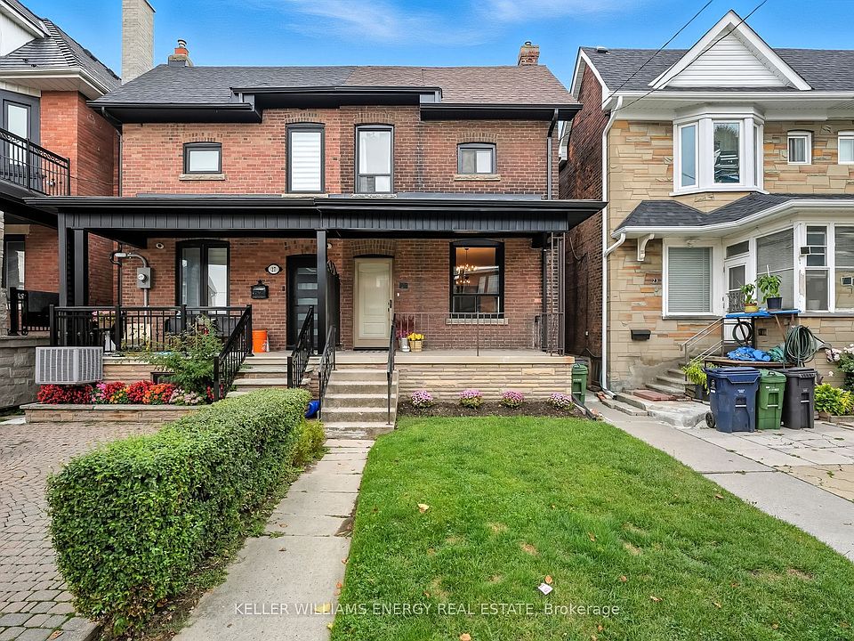Beautifully located near St. Clair & Old Weston Rd, this renovated semi-detached home is perfectly positioned backing onto St. Paul VI Catholic School, offering the ideal blend of convenience and privacy. Thoughtfully redesigned from top to bottom, this home truly checks all the boxes for first-time buyers, investors, and growing families alike. Featuring 3 spacious bdrms, 4 baths, & soaring 9-foot ceilings throughout, Step inside to a stunning, sun-filled living room that overlooks the front porch, perfect for relaxing or welcoming guests. The generously sized dining room provides the ideal space for hosting family dinners and gatherings, blending warmth and functionality for everyday living. Chef-inspired kitchen is the heart of the home, featuring quartz countertops, extended upper cabinets, full-extension soft-close drawers, a deep sgl-bowl s.s sink, built-in storage, and a cozy breakfast nook. Upstairs, youll find three generously sized bedrooms, including a primary retreat complete w/ a brand-new ensuite featuring His/Her sinks, quartz counters, & a walk-in glass shower w/ a niche. Lrg windows fill the space w/ natural light, creating a serene & inviting atmosphere. Two additional bedrooms and a beautifully updated shared bathroom, finished w/ 12x24 tiles & chrome fixtures. The main floor offers added convenience w/ a full 3-pcs bathroom & laundry room. Walkout to your private backyard w/ no neighbours behind. A separate basement entrance provides excellent potential. Enjoy your mornings or unwind at the end of the day on the covered front porch, a charming spot to sip your coffee while watching the neighbourhood come to life. Meticulously maintained, this home is truly turn-key, showcasing pride of ownership and exceptional craftsmanship. Situated in a family-friendly neighbourhood close to parks, reputable schools, shopping, and transit, this property offers modern comfort, functional living,& a fantastic location, making it the perfect place to call home.