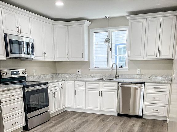 Absolutely stunning! This house has been completely remodeled from front to back. Open concept living area with beautiful picture window overlooking tree lined street. Recessed lighting throughout. Show-stopping kitchen with granite countertops and all new top of the line appliances. Updated bathroom. Two good sized bedrooms with new windows. Hardwoods throughout. New roof, new AC, recessed lighting. New garage door leads to a massive tandem garage. Adorable fenced in yard with flagstone patio. Plenty of room to expand in the huge unfinished basement. Walking distance to the library and all the shops on Hope Village. This is not one to be missed!
