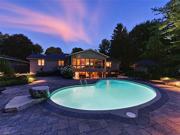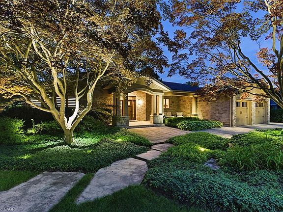 Straight out of a magazine, this architecturally stunning 3 Bedroom, 4 Bath bungalow offers over 5,000 sq ft of luxurious living space on just over half an acre with breathtaking ravine views and acres of nature. Every room exudes chic style, and the backyard oasis is a true showstopper. No expense was spared in customizing this prestigious home, blending timeless design with modern comfort. A covered front veranda with square-cut flagstone welcomes you into the Grand Foyer where exquisite craftsmanship, high-end custom cabinetry, and attention to detail are found throughout. The Living Room flows into a fabulous solarium overlooking the backyard utopia, while the chefs gourmet kitchen impresses with quartz counters, heated floors, steam oven, warming drawer, microwave drawer, and undercounter double-drawer fridge. The Primary Suite features two custom walk-in closets and a spa-like 5pc Ensuite, while the opposite wing includes two additional bedrooms, an office, 4pc bath, mudroom, and laundry. The mudroom provides custom storage and access to a double garage with epoxy flooring and a separate entrance to the basement. Downstairs, enjoy a spacious Family Room with gas fireplace and walkout, a games room, 3pc bath, and generous storage. The backyard is nothing short of spectacular with a jaw-dropping covered outdoor kitchen featuring granite counters, wet bar, full fridge, dishwasher, built-in BBQ, side burner, and gas fireplace perfect for entertaining. A sunken patio leads to the resurfaced heated concrete saltwater pool with custom fencing, while a TREX deck, hot tub, invisible fencing, and full irrigation system complete the space. The professionally landscaped grounds are surrounded by the LPRCA, ensuring lasting privacy and serenity. This chic, smart, and luxurious home was designed for easy living with every modern convenience...a rare opportunity where elegance, comfort, and nature come together. Book your private viewing today.