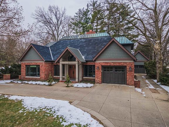 Discerning buyers eager to discover a completely stand-out architectural design in a private, wooded, accessible location will find 25 Sunset Road to be the rare gem they've been waiting for. With 5 bedrooms & 4.5 baths, this 5,693 sq ft Russell Francois designed home is a masterpiece of purposeful, beautiful details. Tucked behind a stand of stately pines, the home strikes a beautiful balance of symmetry, stateliness and a welcoming ruggedness. Brick, limestone and Hardi concrete, copper gutters & slate roof, circular window pane detail, solid wood double entry doors & beamed front porch are the artfully selected & durable elements that combine to compose an appeal well suited to its treasured, tree canopied location. The stunning foyer leads to a massive full masonry, double sided fireplace that grounds the home and establishes its wonderfully creative environment. The integration of beauty and function flows throughout the home. A maple staircase leads to an airy loft that spans the center of the 2nd floor. Solid maple flooring stretches throughout the 1st floor (excluding Master), and hand crafted built-in cabinets & bookshelves fill the space with character. The Dining Room with custom ceiling is bathed in natural light from windows overlooking the front yard. Off the foyer, a private 1st floor office makes working at home a pleasure, with its cathedral ceiling, outdoor views and a 2nd doorway to the Master Suite. Note all interior doors are solid maple. The Great Room is immense, and absolutely stuns with an entire wall of windows overlooking a very private back yard. The mesmerizing 2-story fireplace flanked by custom railings & loft above continues the airy design. Taking full advantage of the wooded site, this space enfolds you in the splendor of nature with the coziness of a roaring fire, while the Bluetooth Integrated Sonos sound system flows throughout the main floor. The freshly painted, light filled kitchen has plentiful cabinets, including custom corner cabinets in the breakfast nook with its cathedral ceiling and large scale windows. GE Monogram appliances, granite tops and a new backsplash keep the chef humming while a serving counter to the Great Room and a back hall to the Dining Room make serving a breeze. Wine cooler and all appliances remain, including the washer and dryer in the 1st floor laundry room. The 1st floor Master is spacious and inviting with its own set of French doors to the side yard. Master Bath is charming with his/hers vanities with a full cabinet between. An iron jetted tub & large heated towel rack are luxurious, and the marble flooring, walls and shower are gorgeous. The 2nd floor has 2 spacious bedrooms (each with private en suite baths), flanking the fantastic loft, an awesome architectural feature which truly inspires a multitude of possibilities for use! The finished basement has newer carpet (2018) and a fabulous, unique layout that steps up like no other! Design features abound as you enter the Family Room through its own passageway with a barn wood ceiling. The Family Room is huge, also features an upscale barn wood wall, and is open to a wet bar room that is plumbed for future installation. 2 large bedrooms with tons of closet space share a huge Jack & Jill bath. All mechanicals are in a separate room, with another large storage room (now used as a home gym) that is large enough to accommodate a pool table. The back yard is fully landscaped with mature trees & gardens and an invisible pet fence. A charming carriage house/1.5 car garage plus an attached 1 car garage continue the enchanting and unique style of the home. The spacious carriage house with its large windows could double as an art studio/wood shop in addition to typical use. Mechanicals/Misc: Russell Francois architectural design, custom built by David Hundman. 2 furnaces/AC units, Ademco Security System, Marvin windows, Central Vac, Humidifier, Radon System, Upgraded WIFI (s
