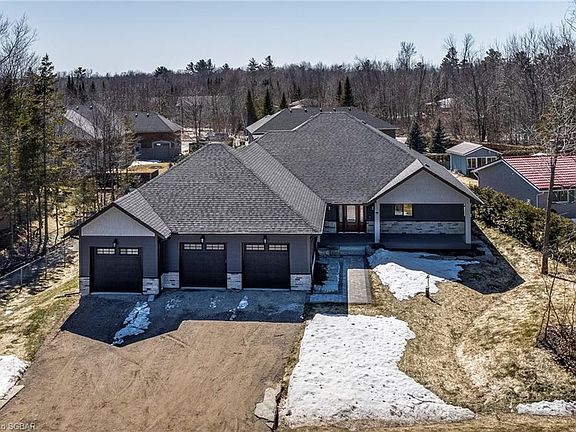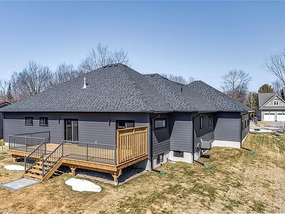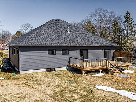 This newly built custom bungalow, located at beautiful Allenwood Beach, sits on a private 1/3 of an acre. This home offers a unique open concept layout with 9' ceilings & easy care vinyl laminate floorings thruout. The Kitchen/Great Room is an Entertainer's Dream. The Chef's kitchen features a Gas Stove, top of the line appliances, quartz countertops, white soft-close cabinetry, crown moldings, under cabinet lighting, and a great sized island with seating for 6 with upgraded pendant lighting. Spacious dining area leads to large patio door creating a light and airy space with walk-out to the deck. Open to the kitchen is the Great room with wall to wall stone clad gas fireplace with mantel. The Principle Bedroom offers 3 separate closets and a spa-like 5 pc ensuite with 7' quartz vanity with dual sinks, free-standing tub, linen closet & shower. 2 additional bedrooms with a private, shared 4 pc ensuite bath. The unfinished basement awaits your imagination with 8.8 ft ceiling height, high-efficiency HRV system, rough-ins for a summer kitchen and full bath, separate utility room, 200 amp hydro supply, partially wired, large bright windows and direct access from the huge 4 car garage. Rough-in Gas connection on deck and behind Dryer. You'll absolutely love the incredible exterior of this home with its covered porch and private backyard. A lovely park is directly across the road. 10 minute walk to Beach. With everything this fantastic home has to offer it is an absolute must see! TAXES TO BE ASSESSED