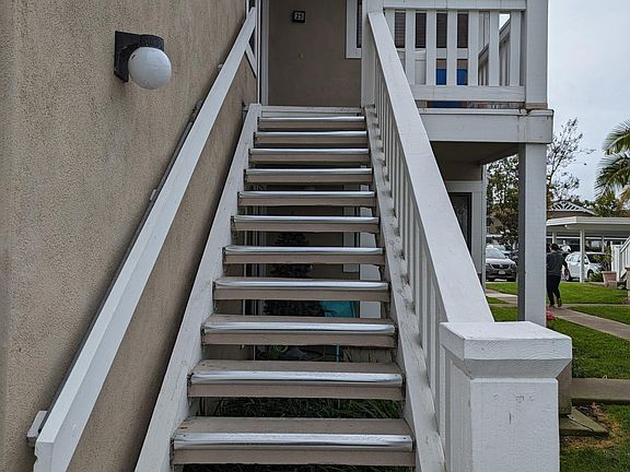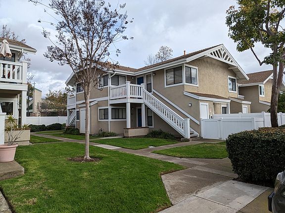 Desirable top floor corner condo unit with 2 bedrooms, 2 baths. There is a balcony just before you enter the front door. Refrigerator, washer and dryer included. Bright and open. Brand new luxury vinyl flooring throughout and new kitchen counter top. Kitchen has plenty of cabinet spaces. One carport parking right outside the condo. Lots of parking spaces in the parking area. Large living room with lots of windows for natural light. Spacious dining area. Large master bedroom suite with balcony, and own private bathroom, dual sinks and a shower. 2nd bedroom is spacious and has its own full sized bathroom. Conveniently located between 5 and 405 and close to lots of shopping areas, restaurants, parks, schools. Association pool, spa, and Trash paid.