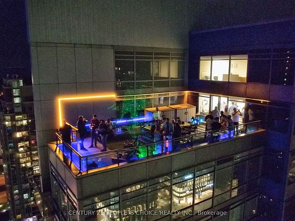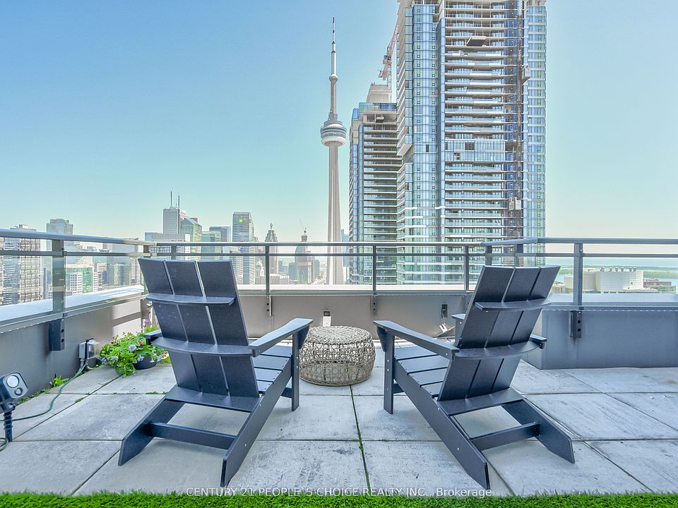 Waterfront Two- Storey Penthouse with Unmatched Private Terrace City skyline views at 25 Telegram Mews, offering breathtaking skyline views and a spectacular 777 sqft terrace designed for entertaining or enjoying stunning sunsets over Lake Ontario. Positioned just steps from the vibrant Harbourfront, this residence provides easy access to Queens Quay boat slips and the marina, perfect for those who love to set sail or enjoy the waterfront lifestyle. This meticulously rebuilt condo boasts luxurious Calcutta quartz counters, full-size stainless steel appliances, and stylish glass staircase leading to the upper level. Both primary bedrooms feature elegant ensuite baths with rainfall showers, while two additional balconies offer the ideal spots for morning coffee with a view. The suite is outfitted with ambient ceiling lighting, fully automated blinds, and refined pot lights, creating an atmosphere of sophistication and comfort. The building itself is a statement of exclusivity, featuring a private high-rise lobby with contemporary updates, three dedicated express elevators, and 24-hour security with fob-access to each floor. Residents enjoy exceptional amenities, including a full size heated saltwater indoor pool, a luxurious 10-person hot tub, and direct access to the onsite Sobeys grocery store. Additionally, the underground parking offers both paid and free guest spaces, while this unit includes two side-by-side parking spots next to a locker for added convenience. Just across the street, Canoe Landing Public & Catholic School (JK-Grade 8) and the recreation center offer excellent community access. With the Spadina streetcar connecting directly to Union Station and the UP Express to Pearson Airport, commuting couldn't be easier. Plus, the Gardiner Expressways westbound entrance off of Spadina is right at your doorstep, ensuring effortless travel beyond the city. Experience the perfect blend of luxury, convenience, and waterfront access in this stunning penthouse.