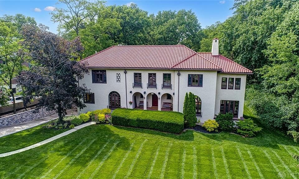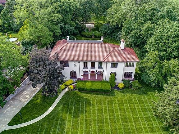 A home designed to impress, this immaculate Italianate style colonial was influenced with elegance in mind. A 5 bedroom 5 bathroom home featuring 3 stories, a finished basement, and an attached 2 car garage with a brand new driveway. Catching your eye before entering the home is the large yard, porch with curved arches and wood beams as well as the unique rounded front door. As you enter the estate, the foyer opens up to a beautiful curved staircase with a classic chandelier in the center. Off the foyer is the spacious living room with high ceilings, original wood flooring, fireplace, and a sunroom with a green tiled fountain original to the home. French doors and many large windows allow for lots of natural light throughout the house. The spacious eat-in kitchen features many updates, a double oven, and stainless steel appliances. The primary suite showcases gorgeous wood beams, an updated full bath, and a double entry sitting room. Character and class throughout the entire house, it is a perfect mixture of original characteristics and modern updates. This home in the heart of Oakwood is a unique treasure.
