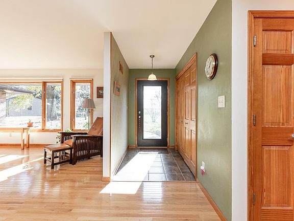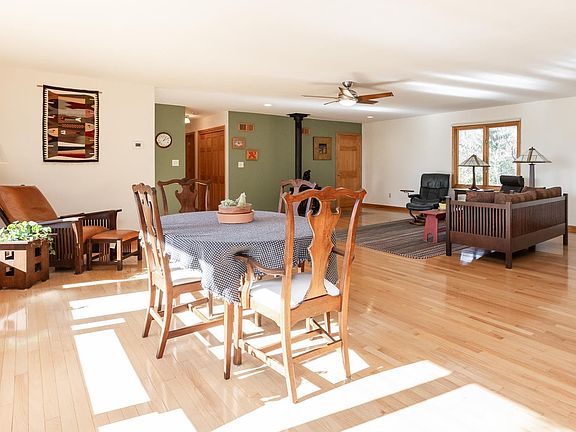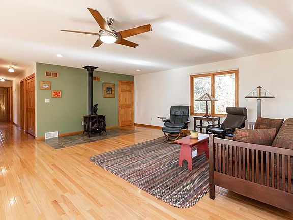 YOU WILL LOVE THE PRIVACY THIS HOME OFFERS WHILE STILL BEING CONVIENTLY LOCATED CLOSE ENOUGH TO TOWN FOR CITY LIVING. Offering just over 5 acres, there is a wooded area with trails to explore plus you get views of the lake from almost every window in the house. This spacious floor plan has close to 4,000 sq ft and has been remodeled making this turnkey! The foyer entry leads to a large open space for entertaining. The main level has beautiful, refinished hardwood flooring, a woodburning stove, large picture window and updated Kitchen/bathrooms. The eat-in kitchen features knotty hickory cabinets, Corian countertops, a coffee bar, mud area and stainless appliances. The main level master suite has its own private deck that overlooks the lake plus a sitting room. The walk-out basement features a rec space, family room, three bonus rooms, another full bathroom and still plenty of space for storage. Detached garage with workshop is a woodworker's dream. Too much to mention, must see!