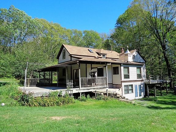 Artistic, Antique Farmhouse on desirable Tower Hill Rd! Relax & watch the world go by on the covered porch swings. A peaceful country setting w/established gardens, stone walls & fruit trees. Large mudroom w/tiled floor & dble closets has plenty of storage. Pantry/laundry room w/ long folding counter would make a great craft room too! Spacious, eat-in kitchen w/custom cabinets, Sub Zero refrigerator, Gaggenau steamer, Thermador double ovens, gas cooktop & professional hood w/warming lights. Commanding center island w/breakfast bar seating, granite counters, Vermont Castings gas fireplace, tin ceiling & funky red double sink. 1st floor office/den has built-in bookcases & composite balcony. Master bdr has a beautiful stained glass window, HUGE dressing room & cherry floors. Your choice to relax in the 1st floor claw foot tub or the 2nd floor bath's, jetted spa. Updated roof, windows, Hardie siding, holding tank, well & pump. Tiled, walkout basement w/an awesome mantown & 2 workshops!