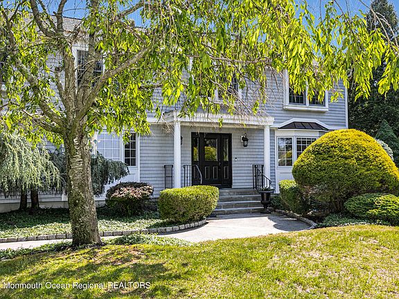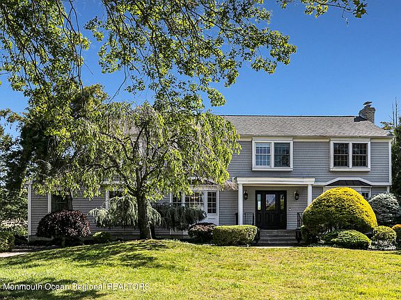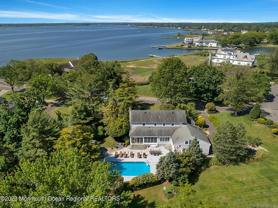 Charming Colonial with open floor plan on 1.5 acres with breathtaking views of the Shrewsbury River. Magnificent flow for indoor and outdoor entertaining. The 5th bedroom/suite could be au-pair suite. & 4 full newer baths, Gourmet eat-in kitchen features 2 center islands one with SS steel work station with convection oven and second center island with granite counter and work sink, & GE Monogram SS appliances. This opens to a large family room with gas fireplace, formal DR with custom built-ins, LR with wood-burning FP and French doors to year round porch, Professionally landscaped lot with specimen trees with a 20 X 40 inground pool and cabana. Close to beaches, high speed ferry to Manhattan and GSP and NY trains. Wonderful schools!