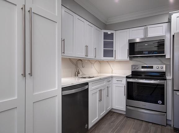 - Exterior features: Crown and Base Molding, Customizable Closet System, Flooring: Laminate, Frameless Shower Doors, Heating: Electric, High-Hat Lighting, Lawn, No parking fee* *Subject to change, restrictions apply., One Year Lease, Online Maintenance Portal, Online Rent Payment, Quartz Backsplash, Quartz Countertop, Stainless Steel Appliances, Undermount Cabinet LED Lighting, White Shaker Style Kitchen Cabinets, Window Treatments