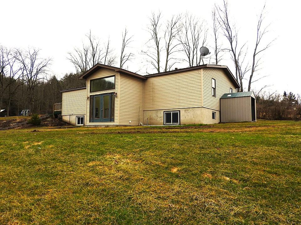 Location! Location! Location! describes this property! This home over looks a large pond and the beautiful mountains. Home features a eat in kitchen, dining room, living room, master bedroom/bath, 3/4 bath with a walk-in bathtub and another large bedroom. Basement could be finished for extra living space. Exterior has a patio a raise garden bed area with a potting shed and green house. All setting on 17.48 acres. Lot and square footage taken from public records.