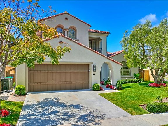 Introducing an impeccably upgraded, move-in ready luxury home in the prestigious gated Catania neighborhood of Talega, San Clemente. Set on a prime corner lot opposite preserved open space, this two-story, 4 bedroom, 3 bathroom residence spans nearly 3,000 square feet and showcases exceptional style and comfort. The home's exterior is highlighted by a charming covered porch and newly landscaped, mature grounds. Inside, you'll find professionally designed spaces adorned with wood flooring, custom paint, subtle archways, plantation shutters, bespoke lighting, and custom hand-carved wood doors, adding a unique touch of artistry. A versatile office with stunning windows awaits, alongside an elegant staircase and a formal dining room featuring wainscoting. The family room is enhanced by surround sound and a stone fireplace, while the newly remodeled kitchen shines with custom cabinetry, quartz countertops, an island, pantry, nook, spice drawers, butler’s pantry, farmhouse sink, built-in Viking refrigerator, Dacor cooktop, and double ovens. The primary suite on the main level offers direct backyard access, a walk-in closet with custom built-ins, and an upgraded bath with a picture-frame mirror, jetted tub, and separate shower. Upstairs, a loft with a balcony and built-in cabinets is joined by two bedrooms sharing a bath and a junior suite with a view. The expansive grounds include a two-car garage with a Tesla charger for your convenience. The home is equipped with an owned solar system, and the patio features a solar-powered covering that gives you the ability to control the amount of shade for comfort. Enjoy the proximity to Tierra Grande Park, top-rated Talega schools, shopping centers, and golf courses, as well as just a few minutes to San Clemente’s beautiful beaches and iconic pier. Experience luxury living at its finest in this remarkable Talega residence!