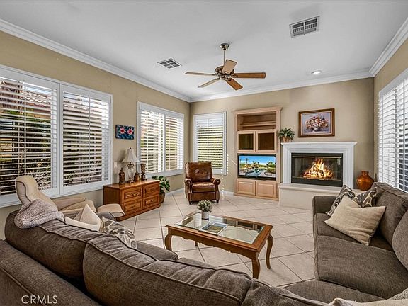 Welcome to this stunning Tuscan-inspired retreat in the exclusive gated lake community of Santo Tomas. This beautifully maintained home offers the perfect blend of luxury and serenity, boasting 3 spacious bedrooms, 2.5 baths and 2,384 square feet of living space on a generous 10,019 square foot lot. As you enter, you'll be greeted by the elegant formal dining room, perfect for hosting dinner parties and special occasions. There is a nice separation of bedrooms with the primary bedroom being in the front of the home with a walk-in closet, separate tub, shower and dual sinks. The primary bedroom and formal dining room both open up to a private courtyard. The other 2 bedrooms are good size sharing a full bath. Gorgeous tile floors and plantation shutters throughout. The heart of the home features a spacious eat-in kitchen, equipped with granite countertops, breakfast island with sink and a butlers pantry. The kitchen flows seamlessly into the living room where you will find a built-in entertainment center and cozy fireplace. Sliding glass doors lead out to the stunning rear yard for entertaining, complete with a refreshing pebble tec saltwater pool/spa and firepit. 2 Brand new AC units. The HOA includes a social/tennis memebership to the adjacent Mission Hills Country Club.
