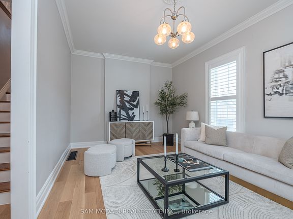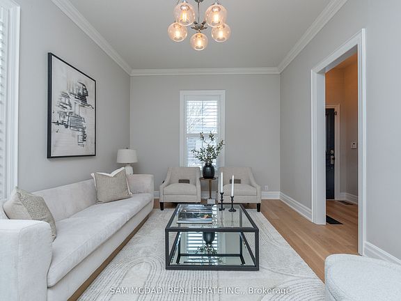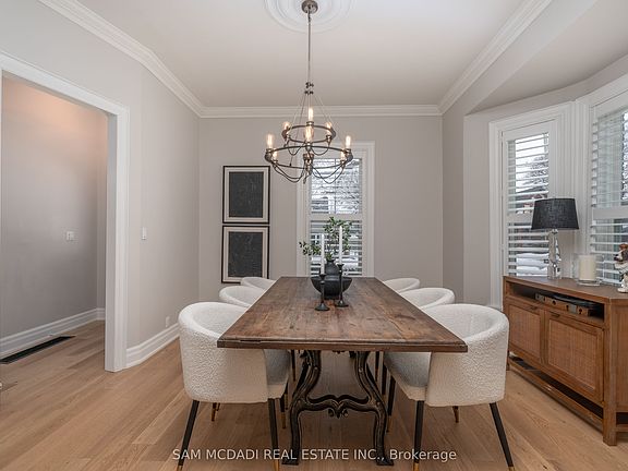Exquisite millworkElegant hardwood floorsFully equipped kitchenCaesarstone countertopsStainless steel appliancesGleaming pot lightsBay-windowed dining room