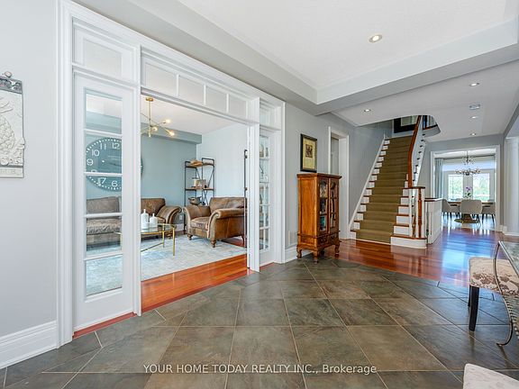 Double Oak excellence teamed with impeccable taste plus a gorgeous ravine lot with heated saltwater pool a win, win, win!! Nestled on one of the nicest & rarely available cul-de-sacs in town, this impressive 5-bdrm, 3.5-bthrm home offers over 5,000 sq. ft. of beautifully finished living space with attention to detail & superior quality throughout. A stylish stone portico, lovely landscaping & striking entry system set the stage for this exceptional home & property. The main level features a spacious layout with 9 ft. ceilings, tasteful flooring, crown, pot lights, U/G trim/window frames & more. Formal dining & living rooms are perfect for entertaining guests or sneaking off for some quiet time, while the kitchen & family room, the heart of the home, are nestled at the back O/L a magical setting! The kitchen & servery feature extended height shaker style cabinetry with crown detail, quartz counter & glass subway tile bcksplsh. An island with seating, SS appliances, breakfast area & W/O to the large glass paneled deck O/L a backyard oasis are sure to delight the chef in the house. The adjoining family room enjoys a toasty gas F/P & large view over the breathtaking yard. An office, powder room, laundry room & mud room complete the level. The upper level offers 5 spacious bdrms, one with W/O to balcony & all with ensuite access. The primary suite features an eye-catching feature wall, W/I closet & decadent 5-pc. An O/C basement adds to the enjoyment with a party-sized rec room, exercise area, office area & large workshop/utility room. A toasty gas f/p set on a shiplap feature wall, large A/G windows & W/O to the covered patio, pool & cabana add to the enjoyment. Wrapping up this extraordinary offering is the breathtaking ravine lot with stunning tiered gardens, pool, extensive patio area, huge deck & cedar-lined cabana. Great location for commuters. Steps to the amazing Hungry Hollow trail & close to rec centre, schools, parks, shops & more.