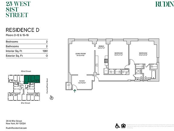 Spacious, 2 Bedroom, 2 Bathroom home, apartment 12D features:
