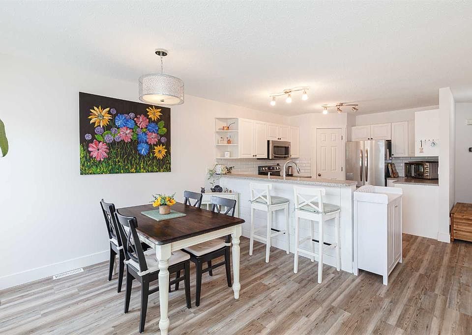 Welcome to this beautifully updated 3+1 bedroom, 2.5 bath townhome offering exceptional value and a truly move-in ready experience. Located in a quiet, well-kept complex, this home stands out with thoughtful updates, smart design, and one of the few layouts in the community to feature three full bedrooms upstairs. Step inside to discover a bright, open-concept main floor with luxury vinyl plank flooring, fresh paint throughout, and a modern kitchen that’s as functional as it is stylish—complete with a brand new stove (2025), new fridge (2023), and dishwasher (2020). The dining room offers space to gather, while the cozy living room, anchored by a gas fireplace, all this opens to your private back deck—perfect for soaking in those sunny days. Upstairs you’ll find three well-sized bedrooms, all enhanced with new triple-glazed windows, updated trim, and new blinds—details that elevate comfort and energy efficiency. A spacious four-piece bathroom completes the upper level. The fully finished basement expands your living space with a large rec room, fourth bedroom, and a beautifully renovated bathroom with in-floor heating—a welcome feature for Calgary winters. Newer carpet (2025) and updated windows ensure the lower level is just as inviting as the rest of the home. Additional perks include central A/C, a newer furnace with UV light (2021), hot water tank (2018), phantom screen doors, and a single attached garage with driveway parking. Guest parking is conveniently located right out front. Whether you're upsizing, rightsizing, or investing, this well-maintained home offers comfort, convenience, and a layout that adapts to your lifestyle. Don’t miss your chance—schedule your private showing today. Homes like this don’t come along often.