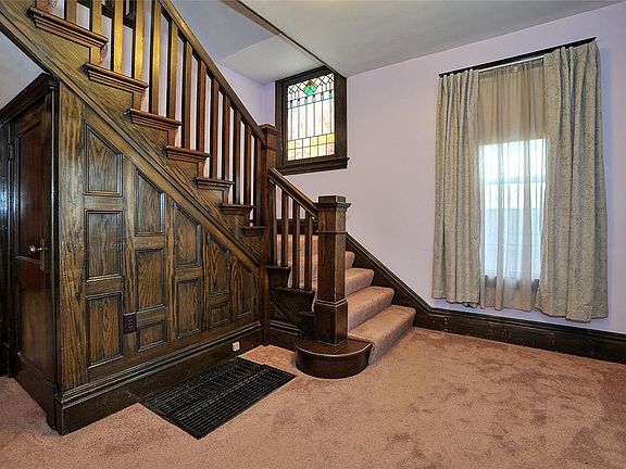 Faux fireplaceLevel backyardCustom woodworkOff street parkingBeautiful stained-glass windowsHigh ceilingsMoveable island