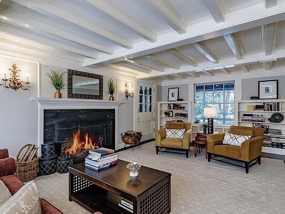 - Din Dscrp: Flooring - Wood, Fireplace, Wainscoting, Window(s) - Bay/Bow/Box, Closet/Cabinets - Custom Built, Ceiling - Beamed