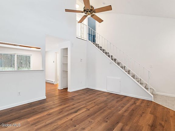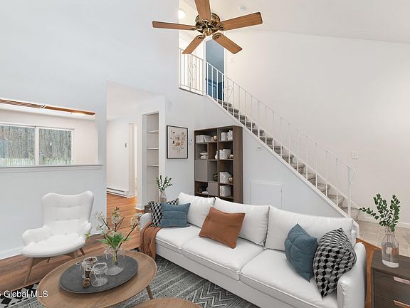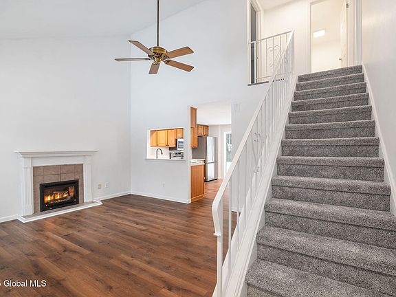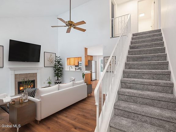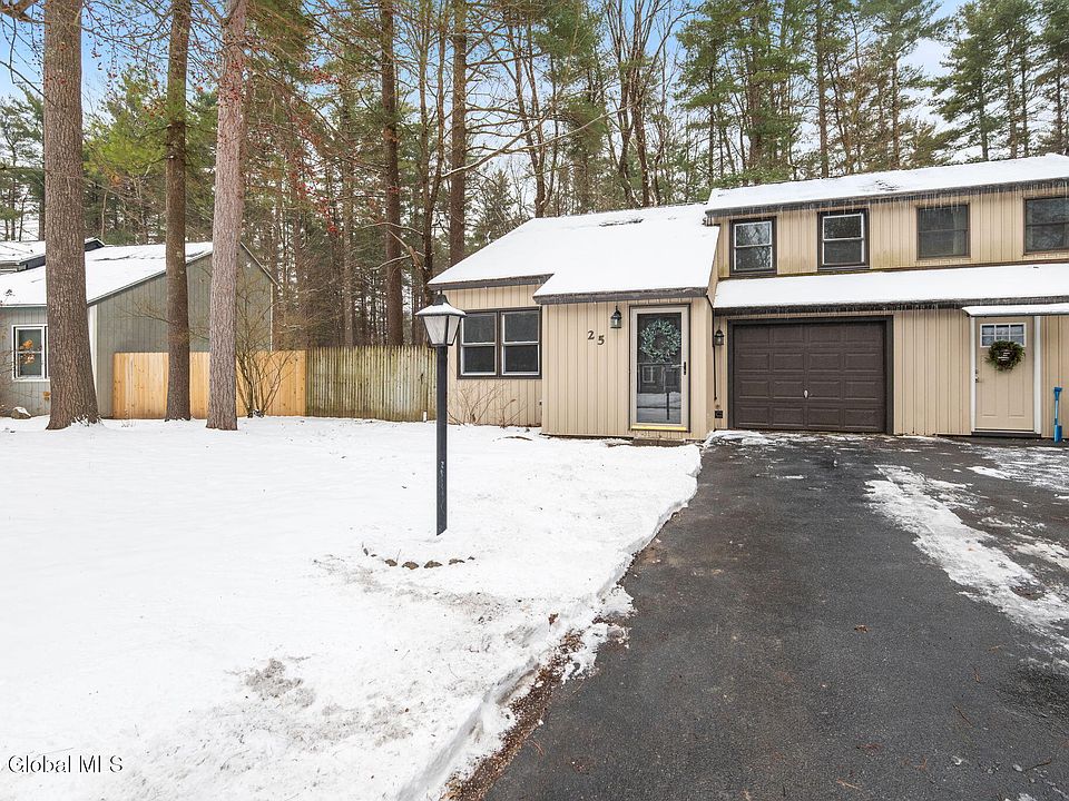 Affordability meets nature's tranquility at this freshly updated 2 bed, 1.5 bath end unit townhome in the desirable Luther Forest community with wooded walking trails. Step inside to a soaring ceiling in the living room flooded with natural light. Curl up in front of the cozy gas fireplace. Whip up delicious meals in the updated eat in kitchen w/quartzite counters & new SS appliances. Grill & chill on the deck looking onto the fenced back yard & serene woods beyond. Do your best work in the 1st fl home office. Both bedrooms have new carpet & are big enough for a king sized bed. Get fresh in the stylish main bath. Easy care vinyl siding. Roof 11yrs. W/D 2yrs. 3 miles to Global Foundries & 4 miles to Saratoga Lake. HOA just $130 per year. www.fwena.org for HOA info