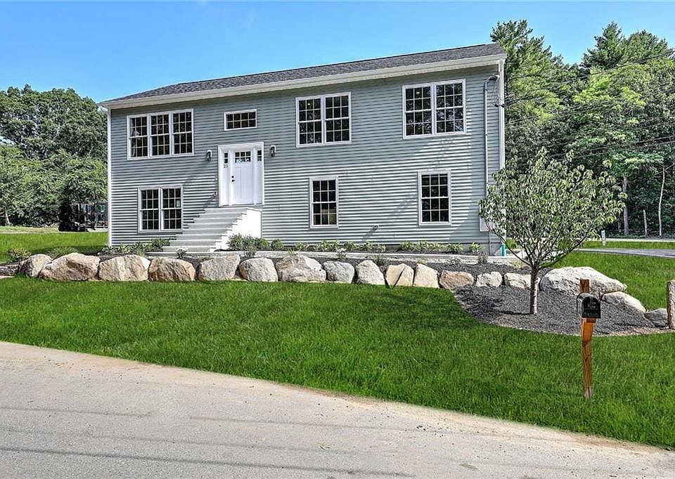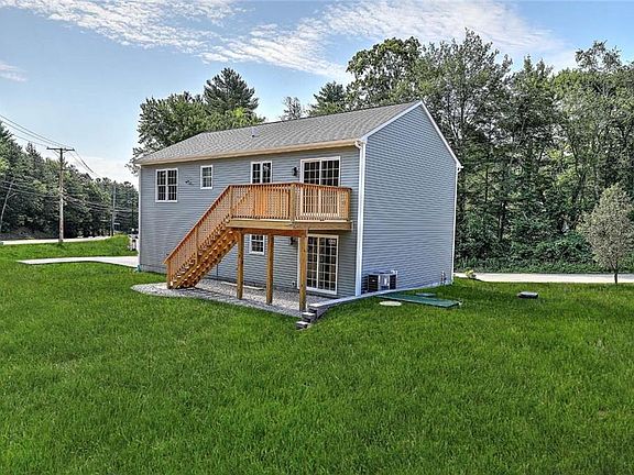 2025 New construction 1800 sq ft, 3-bedroom, 2.5-bath home. Red oak hardwood flooring runs throughout the kitchen and living room, both of which feature cathedral ceilings and abundant natural light. The kitchen outfitted with white shaker cabinets, stainless steel appliances, a large island, and granite countertops. A 10x10 rear deck with stairs leading to a spacious backyard, ideal for indoor/outdoor entertaining. The primary bedroom includes an en-suite bathroom with fully tiled floors and a walk-in tiled shower. The finished walkout lower level includes family room, half bath with laundry, and sliding glass doors for easy outdoor access. Additional features include a generous 2-car garage, central A/C, and an overall open floor plan. Landscaping includes plantings, flowering trees, natural stone, & hardscape elements. Thoughtfully designed for functionality, comfort, and modern living. Located on a quiet dead-end street in Harrisville, RI, just minutes from Routes 295 and 146.