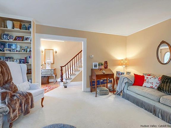 Don't miss out on this absolutely charming home. The delightful warm living room invites family enjoyment. You will love the open floor plan. A beautiful sun filled family room is open to a good size dining area and an updated kitchen featuring a breakfast bar and stainless steel appliances. Just off the family room is access to the patio that overlooks the level backyard. Upstairs is a very spacious master bedroom, 2 additional bedrooms and the full bath. There is plenty of storage in the walk up attic.Beautiful hardwood floors on the first floor and wide board wood floors on the second floor. Several recessed lights throughout the house. Laundry is in the full unfinished basement. Located only minutes to shopping and the Mid Hudson Bridge