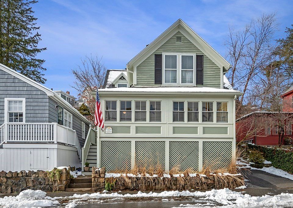 Cool story! This home was originally built on Marblehead Neck in 1875 and moved to its current location (nestled in the heart of the Historic District) in 1906, making it central to shops, restaurants, cafes, and beaches. This sun-filled and lovingly maintained home is filled with charming character: exposed brick, beautiful hardwood floors, built-in cabinets, and vintage mouldings. Featuring an updated kitchen with granite counters and stainless-steel appliances and a fully renovated full bath on the second floor, the home also has 3 spacious bedrooms, a lovely 4-season porch, first-floor powder room, fire-placed living room, plenty of storage space in the attic, full basement, and more storage under the porch! Enjoy the views of the Old North Church steeple and entertain on your tiered stone patio amongst lush gardens. It's the perfect marriage of antique appeal and modern amenities! Offers due Monday, 2/6 at 5:00 p.m. Seller has the right to accept an offer at anytime.