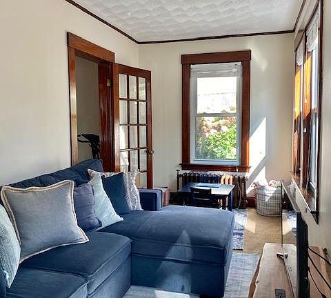 Charming, NO FEE, Single Family Colonial Home on one of the most friendly and welcoming streets in Newton. Sun drenched living and family rooms complete with stained wood throughout and a beautiful decorative fireplace, join a separate dining room and eat-in kitchen. The second floor welcomes you with a modest home office, three bedrooms including an enormous L shaped bedroom with a walk-in closet and a full bathroom. The partially finished basement provides substantial amounts of storage, a partial kitchen (no appliances), laundry room with washer and dryer, and second full bathroom. Enter this well-maintained home through either the front door, or a side door which faces a large two car garage with additional storage and a large three car driveway. Follow the back stairs to an enchanting back oasis complete with a fruit producing grapevine and mature flower garden! The grounds are professionally maintained and landscaped weekly by one of the most sought after landscapers in Newton at no cost to the renter! Owner will consider one cat or one small dog. Walking distance to West Newton Square and Newtonville and zoned schools, and a few minute drive to the Mass Pike. Less than 15 minutes to Boston. Some flexible lease options available. Central Air