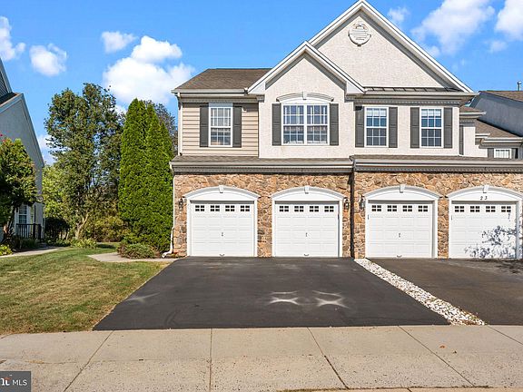 Rarely offered end unit backing to open space in the Wiltshire Walk development; the Foxton II Grand floor plan features a huge third level loft, perfect for a 4th bedroom or private in home office; a formal side entrance to a side by side living and dining room and leading to a family room with soaring 2 story ceiling, gas fireplace and open to a large eat in kitchen with granite countertops with plenty of work space; the kitchen opens to a rear, maintenance free deck overlooking the rear yard and open space; the second level features a primary bedroom suite with multiple walk in closets and a primary bath with soaking tub and stall shower; two additional bedrooms are on this level as well as a hall bath, laundry room and a walk-in linen/storage closet; this home features 9' ceilings, a 2 car garage and a large finished basement with additional storage areas and an additional half bath; only a short distance from Historic Newtown Borough as well as convenient to Tyler State Park, Core Creek County Park, and also convenient to I-295, Route 1, the PA Turnpike, and train service to NYC and Philadelphia