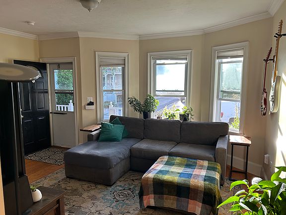 This spacious unit features 6 rooms including 2 bedrooms, 2 full baths and bonus space in a finished basement. Kitchen features granite counter tops, stainless steel appliances and maple cabinets. Great location, close to area restaurants, dog park, movie theater, grocery and drug stores. Street parking is year-round! Easy access to routes 95/128, 2 and the Mass Pike. Short walk to public transportation. Central a/c, in-unit laundry, and a fully fenced in yard make this condo the one for you!