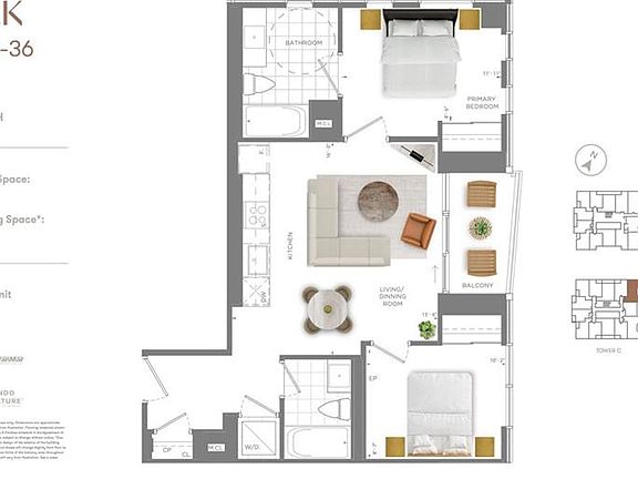 Corner suitePrivate balconyModern kitchenQuartz countersStainless steel appliancesIn-suite laundry