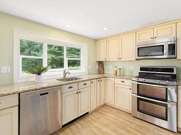 Welcome to this beautifully renovated 4-bedroom, 2.5-bath waterfront home (3-bedroom septic), where modern comfort meets country charm on approximately 150 feet of pristine, eastern-facing frontage along Locustville Pond. Reconstructed in two phases and fully completed in 2013, the home features updated structural and mechanical systems for year-round peace of mind. The main level offers open-concept living with a stone fireplace, exposed beams, and large windows showcasing panoramic pond views. The kitchen is updated with granite countertops and modern appliances and flows into the dining and living areas. A slider leads to the backyard with direct pond access and panoramic views. A half bath and short staircase lead to the primary suite with a walk-in closet, full bath, and screened-in porch. Upstairs are three more bedrooms and a full bath, including a spacious bedroom with elevated water views. Additional highlights include central air, a newer roof (~2 years), and a brand-new garage roof (2024). Deeded dock rights allow motorboats for maximizing your adventures on the water, whether it's tubing or fishing. This special home offers the best of waterfront living.