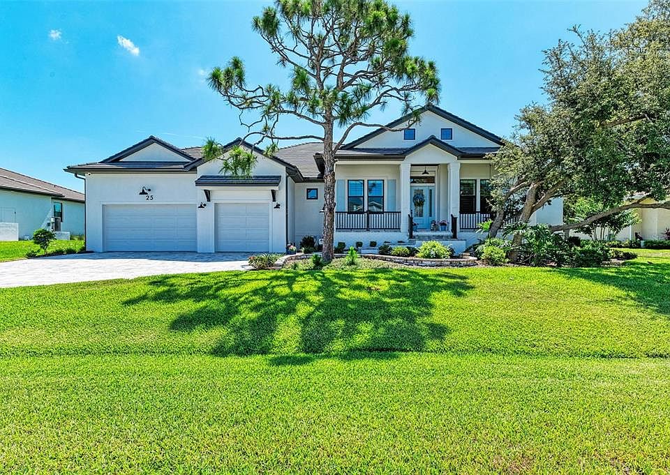 Stunning 2022 Custom Built Pool Home in Cape Haze Winward community built by Thornberry Custom Homes on the 12th Green of the Links Course awaits new owners! Upgrades abound in this 4 bedroom, 3.5 bathroom, 3 car garage home, including beautiful high ceilings, custom woodworking and trim throughout, impact hurricane windows & doors for whole home, beautiful porcelain tile floors, custom cabinetry and bespoke light fixtures, a gorgeous layout with stone counters and upgraded cabinetry and appliances, great indoor and exterior entertaining areas, and more all overlooking the pool and golf course. From the front, enjoy beautiful landscaping that accents the architecture of the covered front porch with swing and shade under the oak trees. Inside, find a spacious foyer open to the great room and kitchen, with French doors to the covered lanai with separate entertaining areas and a feature wall with electric fireplace and custom mantle. Off one side of the entry, find a bedroom (currently used as a study) to the right and a formal dining room to the left, that connects to the kitchen and pantry/butlers pantry area. Farther in, enjoy the open concept spaces of the gourmet kitchen with GE Monogram and Cafe appliances, tons of storage, and a large island. Also in this space is a spacious dinette area with built in banquet and windows overlooking the pool and backyard. On the right side of the great room, a powder room is conveniently located, and the primary suite takes up the remaining side, with a spacious bedroom, a spa-like en-suite bathroom with dual vanities, walk-in shower, soaking tub, a linen closet, and huge walk-in closet with closet systems. On the opposite side of the home, find a great flex space with extra storage that connects to the inside laundry room, 3 car garage with tall ceilings and extra storage closet and generator plug, and 2 additional guest suites, each with en-suite bathrooms. Outside enjoy an oversized lanai with both covered and open spaces to entertain and direct pool bathroom access. The covered pergola is situated beautifully to relax and enjoy some shade while overlooking the large, heated saltwater pool with sun shelf. Enjoy barbecuing in the covered area with outdoor kitchen with marine grade cabinets, as well. The panoramic pool cage makes seeing the landscaping easy, as the golfers pass by. This home has it all, so be sure to ask for the features sheet, which includes many more upgrades and details on insurance. With low HOA fees, only $250/year, manicured public golf nearby, and great beaches, restaurants, boating, and more, do not miss out on this amazing home!
