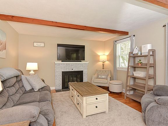 MANSFIELDS BEST This updated home is located close to routes 95 & 495, the commuter rail, conservation areas, as well as Borderland State Park. This home features 2020 GAS HEATING, H20, WINDOWS, an expansive fenced-in backyard ideal for gardening and entertaining, as well as a storage shed and a beautiful seasonal glass sunroom, with carefree vinyl siding. The modern kitchen offers SS appliances, updated cabinets, granite counters, as well as a dining area with sliders that lead to the private wood deck overlooking the lush landscaped grounds and serene pond. Gleaming wood floors throughout the formal dining room and living room, which feature a fireplace and beamed ceilings. 3 bedrooms upstairs, while there is another bedroom that could easily be used as a home office or guest space. Both bathrooms have been updated; one with a tub and one with a glass shower stall. Half of the basement is finished with a custom bar & gym area, while the other half is ideal for systems & s