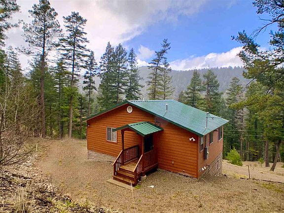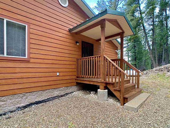 Impeccable mountain cabin features every comfort & beautiful finishes while the covered deck out front showcases beautiful mountain views. Ground entry into each level for easy access with few or no steps. Gorgeous hardwood floors, propane fireplace with pretty tile surround, super open kitchen with huge serving island, gas stove. Downstairs features BR #2 & #3, full bath, garage & utility with washer/dryer. Young canyon home sits above road for privacy & has plenty of parking. Approx 5 mi to Cloudcroft.